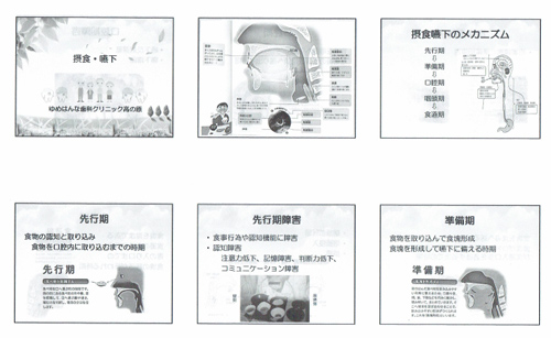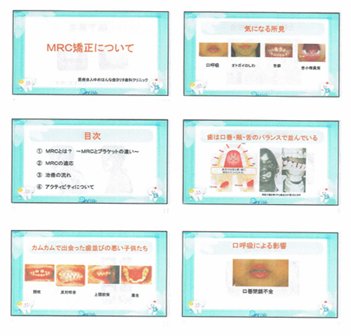 矯正に欠かせないアクティビティなどを、誰もが見てわかりやすいスライドを用いて