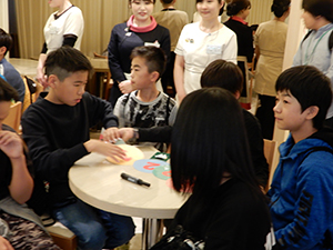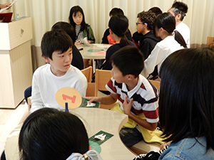 4チームに分かれて、皆で歯に関するクイズの答えを考えます。