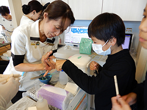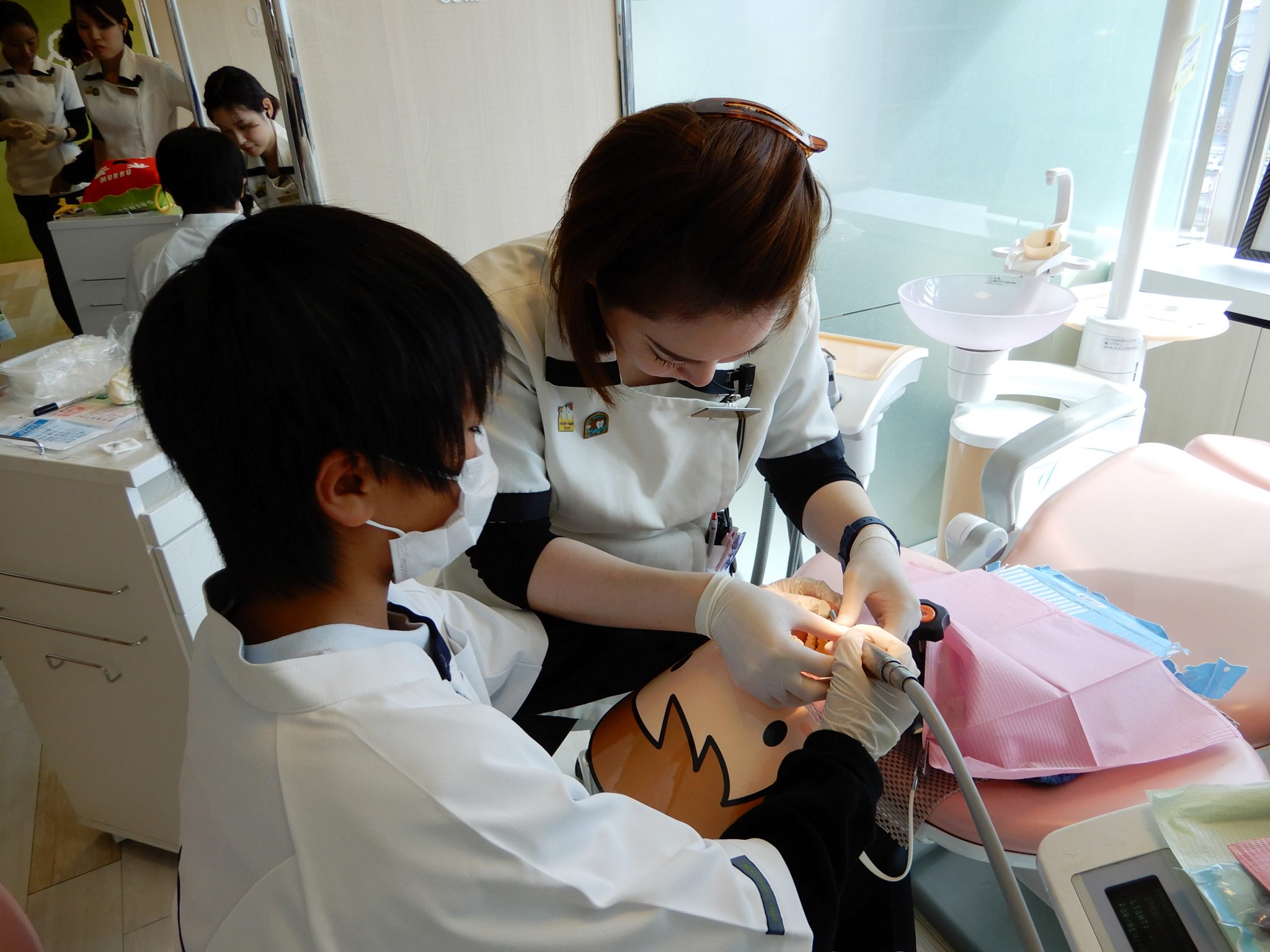 模型の歯を使い、ムシ歯をつめる体験もして頂きました。