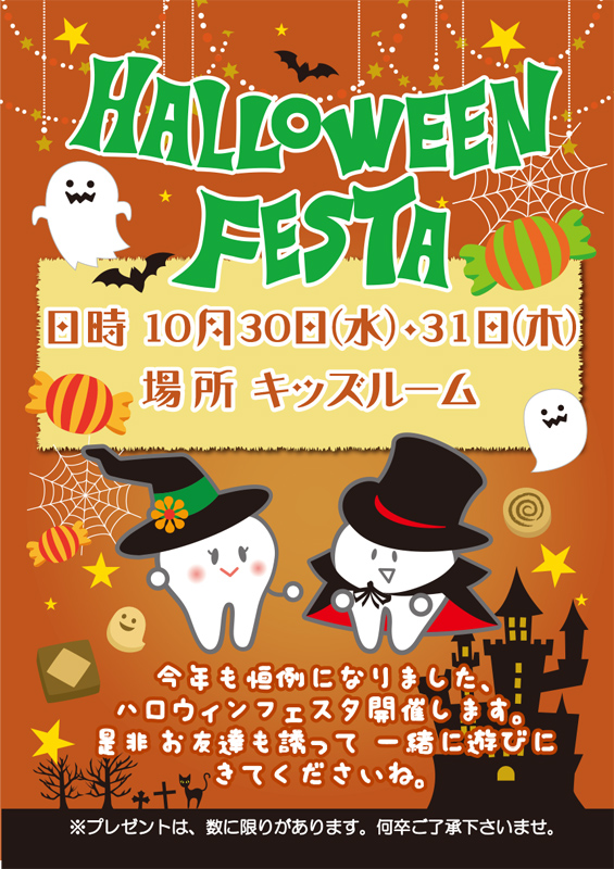 ハロウィンフェスタは、本日まで開催します。