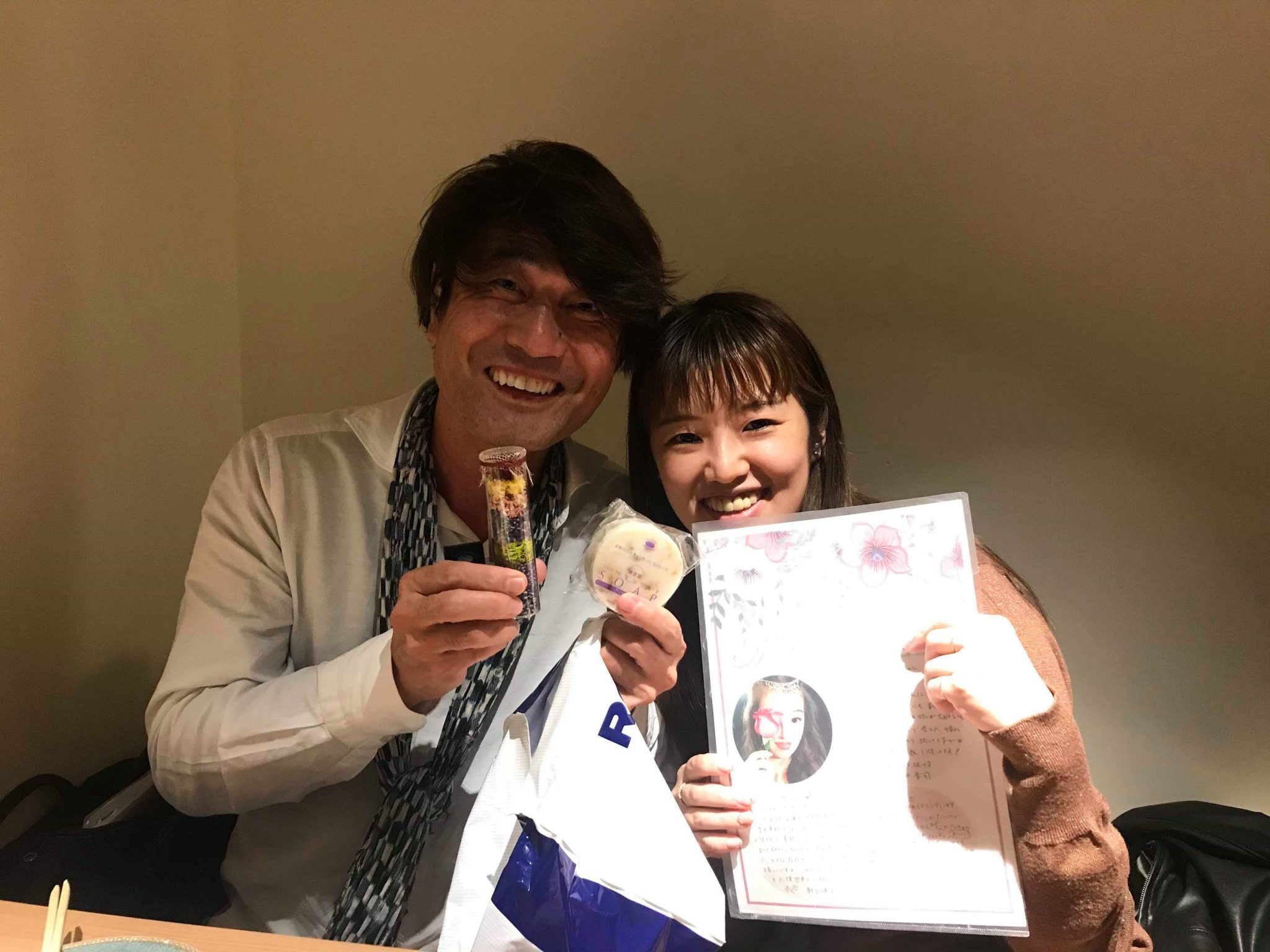 今週木曜日がお誕生日ということもあり、私たち3人からメッセージカードをお渡ししました。