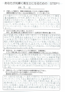 ○あなたが診療で学んだ事は、何ですか?また、逆に疑問に思った事は何ですか?