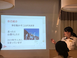 ・はじめに参加者6名、一人ひとりが身だしなみと立ち居振舞いについての発表が