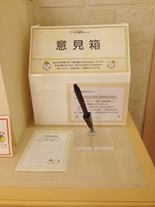 待合室向かって右側に、ご意見用紙とご意見箱を設置しております。