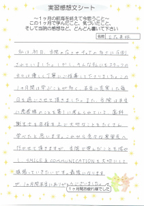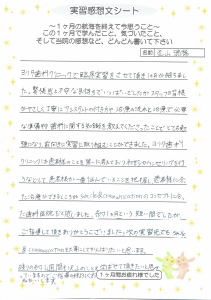 ◆実習感想文シート ・ヨリタ歯科クリニックで臨床実習をさせて頂き、一ヶ月が経ちました。 ・私は初日、当院の広さやチェアの多さに圧倒されていました。 |