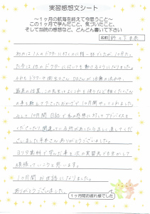 よくこれを使うなど、細かくたくさんの事を教えてくださったおかげで、1ヵ月間やって