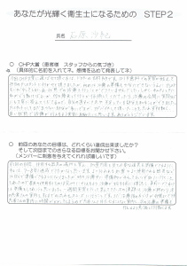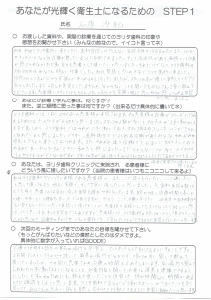 頂いたことを忘れず行動し、良い状態で診療が行えるように実習に励みたいと思います。