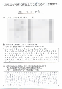 また、患者様の質問にも丁寧に答え、聞き取りやすい声で話されていて、見習いたいと