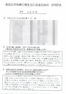 濱口さんのように積極的に勉強し、テキパキと行動ができるような衛生士になりたいと