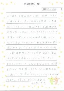 そして、スマイルクリエーターの名に恥じぬよう、笑顔を忘れず、患者様にもスタッフにも