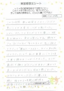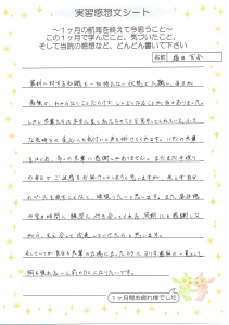 ・この一ヶ月間、新人研修をさせていただき、辛いことや大変なことが8割でした。