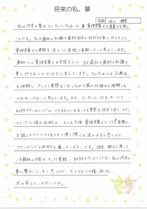・私は将来、丁寧な対応と優しい笑顔、仕事の正確さと速さ、美しい所作と言葉遣いで患者様にも