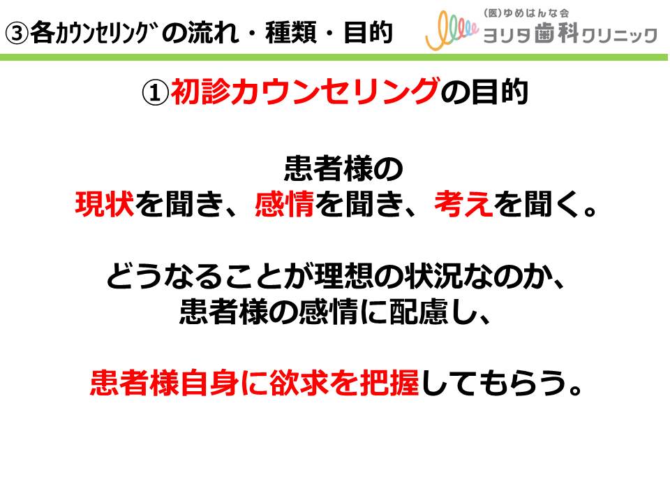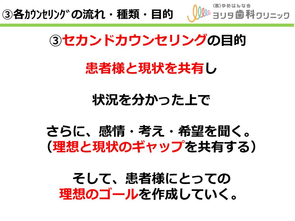 TCでは、初診カウンセリング⇒セカンドカウンセリングの大切さを