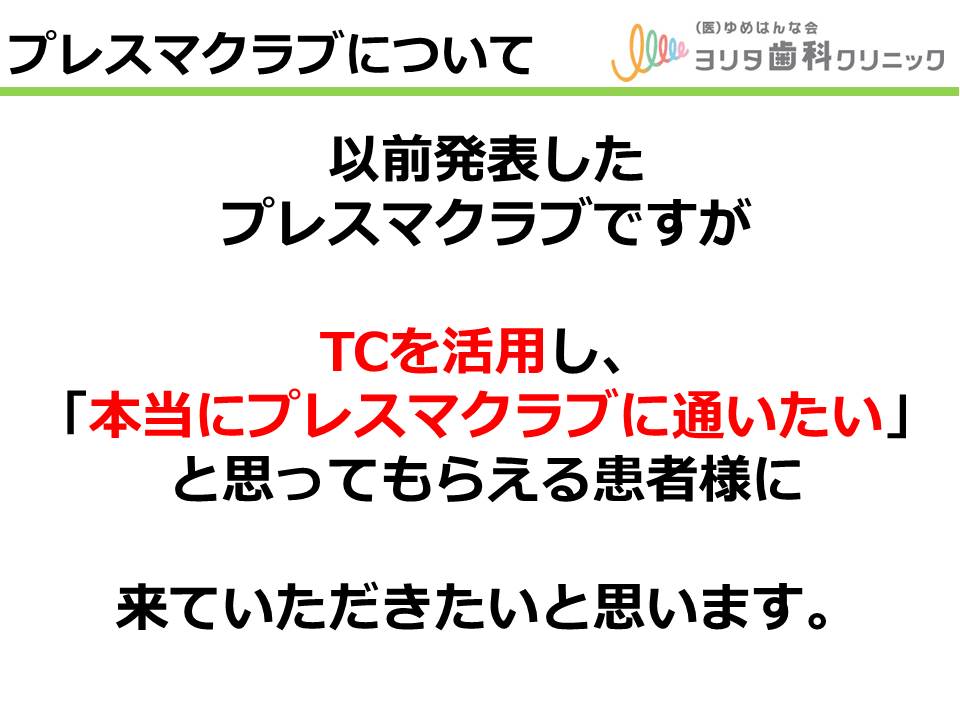 新しく発足される『プレスマクラブ』と、TCについてです。