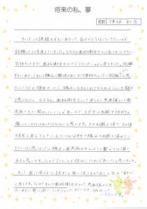 その中でも、実習感想文シート、『将来の私・夢』をご紹介します。