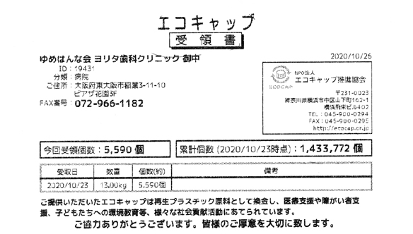 たくさんの患者様からの協力のお陰で、10年で100万個を超えるキャップを