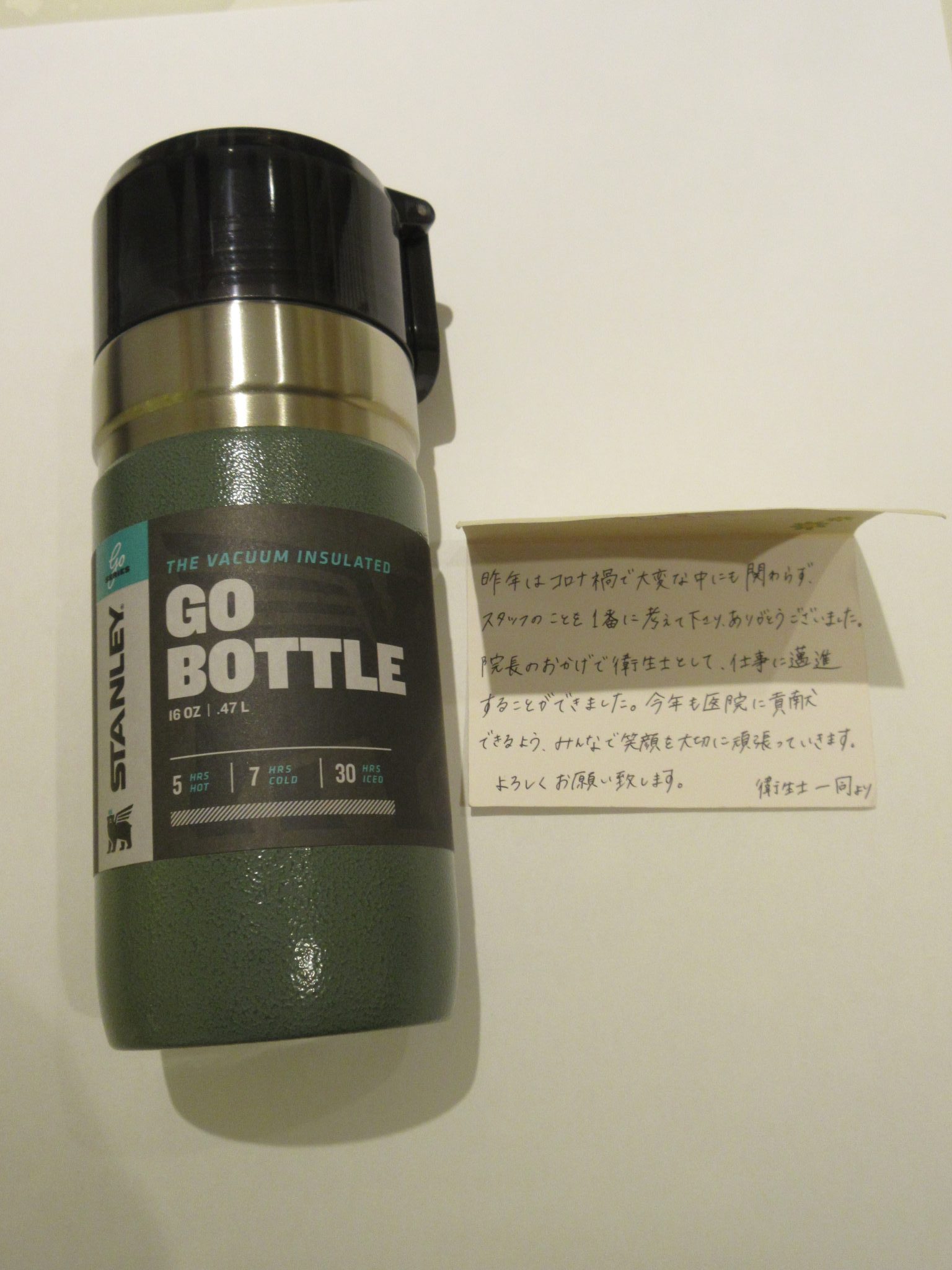 衛生士メンバーからは、メッセージ付き、ステンレス製 携帯用真空ボトル