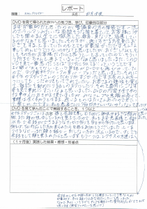 このレポート提出から1ヶ月後、DVDを見て実践した結果や反省点を