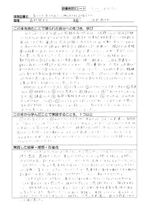 新人衛生士の池田さん、福冨さんから、読書感想文シートが、届きました。