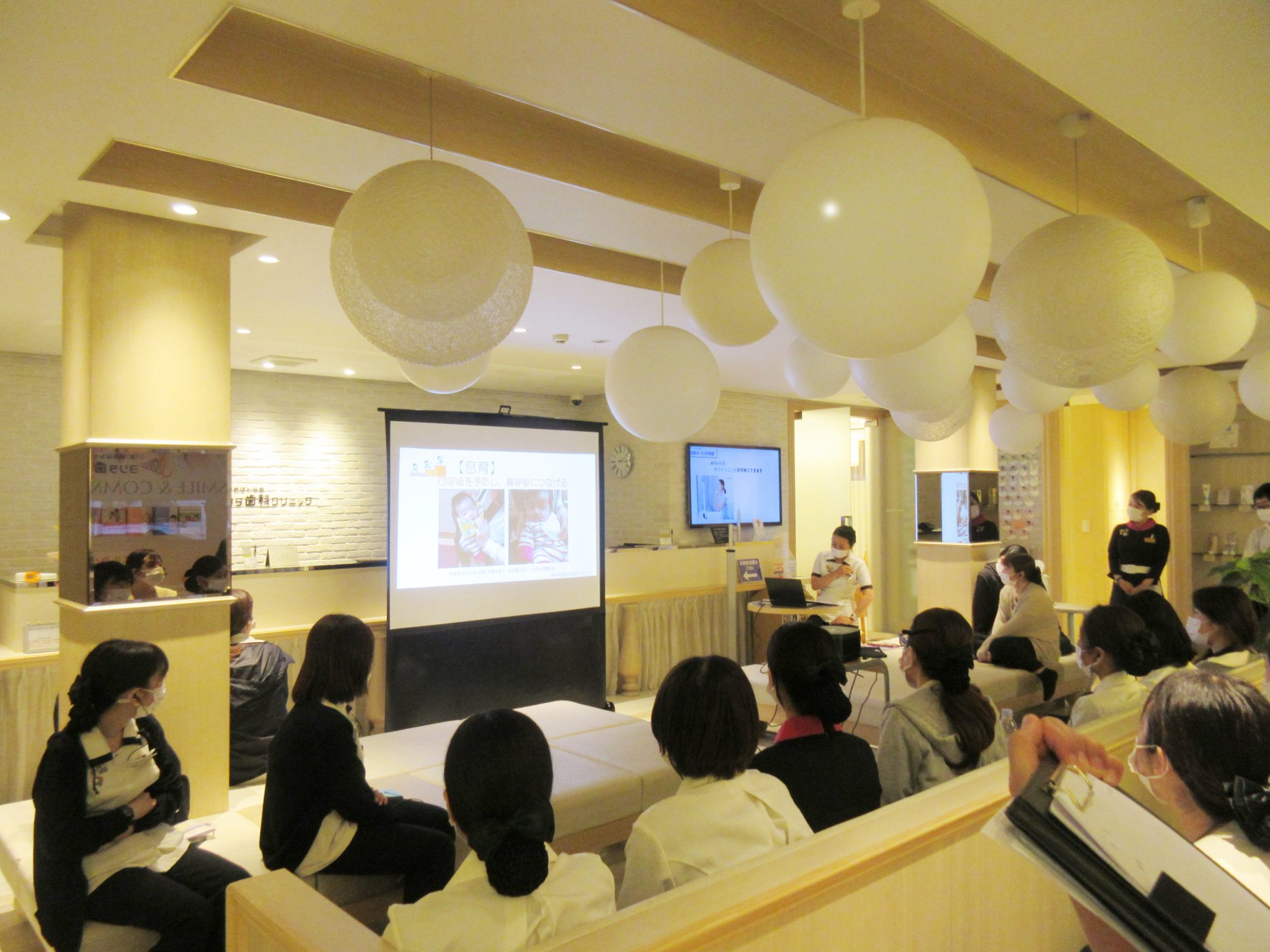 赤ちゃん歯科チームによる、スライドを使った説明会がありました。