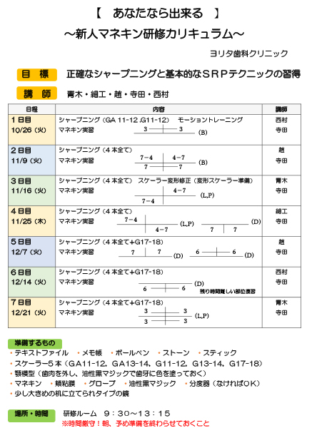 研修目標は、『正確なシャープニングと基本的なSRPテクニックの習得』