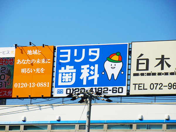 光り輝いている、ヨリタ歯科クリニックの屋上看板が、完成しました。