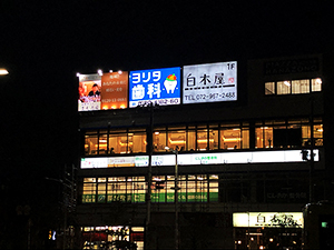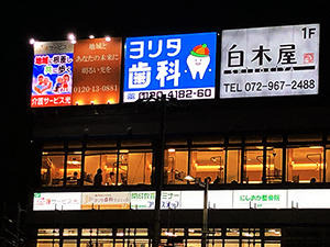 そして一際、屋上看板が光り輝く時間帯が、夜間です。