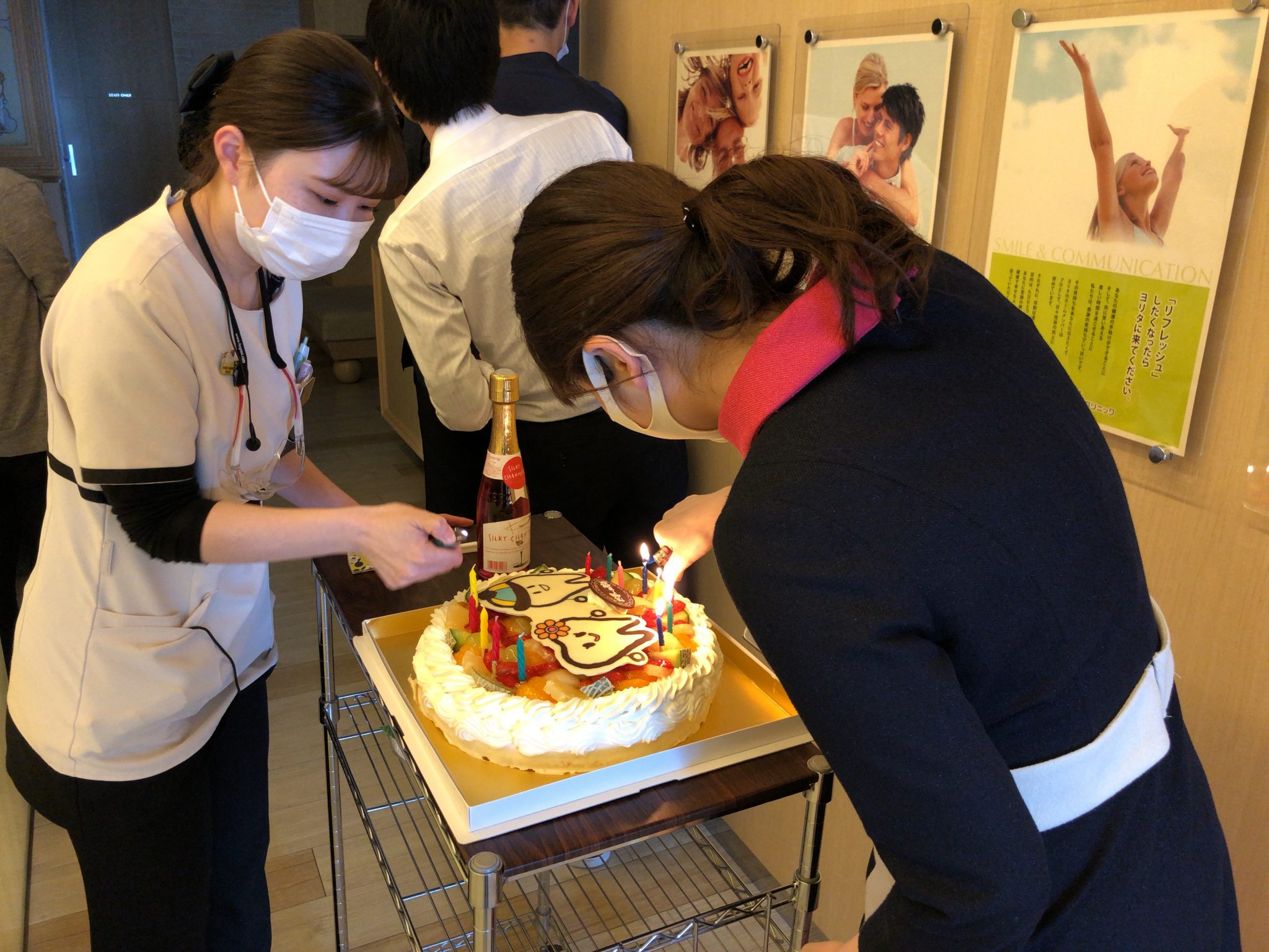 ということで、昨日のお昼休み、スタッフ全員でお祝いして頂きました。