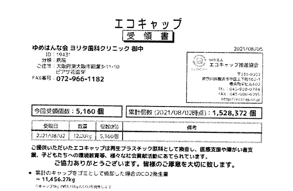 早速エコキャップ推進協会へ、回収分を送らせて頂いています。