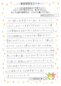 今回の実習で学ばせて頂いたことを、これからも活かして頑張ります。