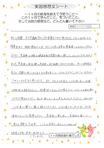大角さんの実習感想文シートの内容は、以下の通りです。