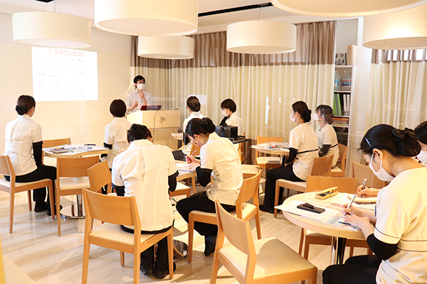 | ・スマイルクリエイターの役割 ・ホスピタリティを高めるためにしていること ・患者様との事例(成功例・失敗例) ・接遇に心掛けていること ・チーム医療のためにしていること ・どんなスマクリチームを目指すか ・アポイントの取り方で気を付けていること ・インカムの使い方 ・治療内容について ・仕事観(丁寧な仕事・自律性・責任力) |