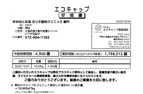 今年も患者様からの協力のお陰で、沢山のキャップを