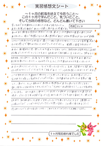 入職一ヶ月が経ち、実習感想文のレポートが、私の元に