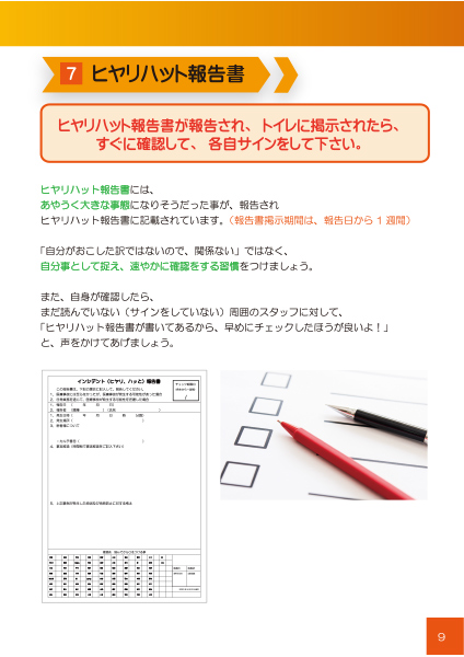 ・「ヒヤリハット報告書」を、スタッフがよく目にする場所に掲示される