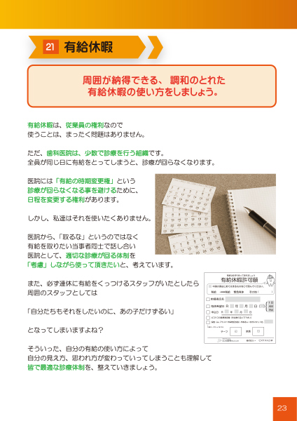 考えて有給を取る事が大切だと学びました。歯科医院として診療が回らなくなる