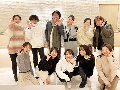 | 10:00~10:30 アイスブレイク&自己紹介 開会宣言 10:30~10:45 寄田院長より内定証書授与 10:45~11:30 先輩スタッフを交えたチーム対抗ゲーム 11:30~11:50 先輩DCとのトークセッション(お茶会) 11:50~12:00 加藤より今後の流れ・ご案内 閉会 |
