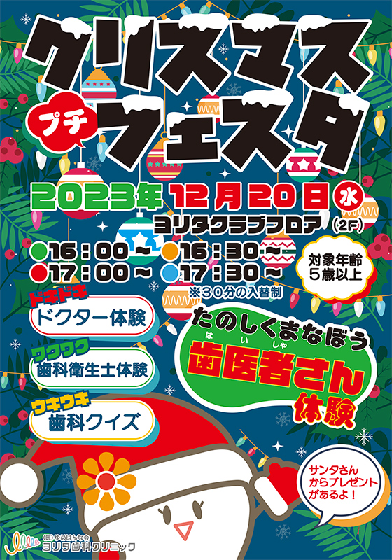 12月20日は、4年振りのクリスマスプチフェスタと、赤ちゃん歯科教室を開催。