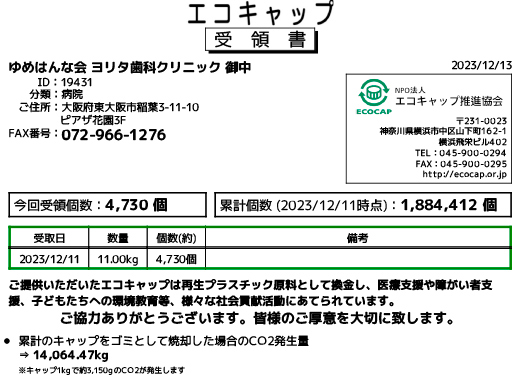 今年も患者様からの協力のお陰で、沢山のキャップを