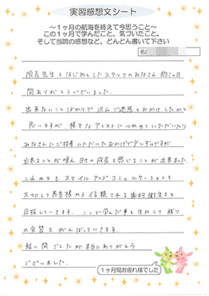 日本歯科学院の実習生2名から、実習感想文のレポートが私の元に、届きました。