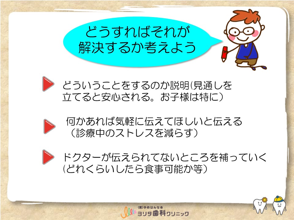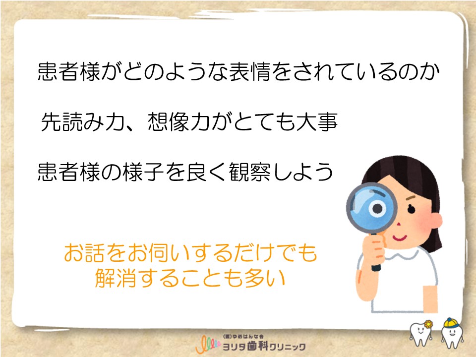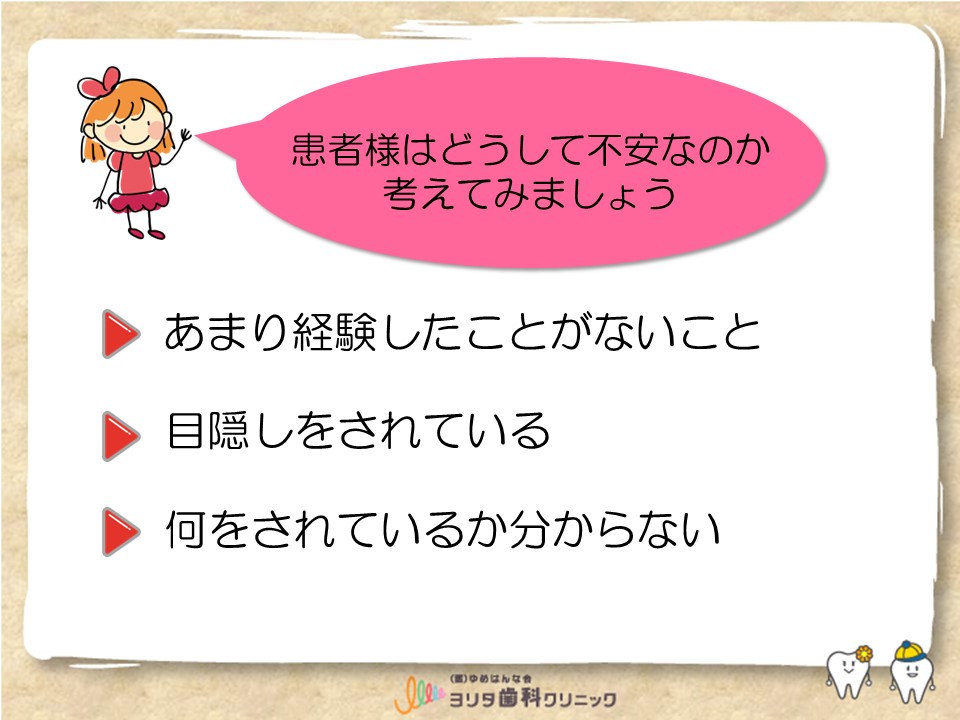 思ったので、治療をされる前を不安を私たちが少しでも取り除けるように、声掛けして