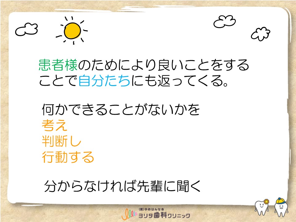 ・1回目の研修を受けて、”お客様”ではなく、”患者様”という言葉がすごく響きました。
