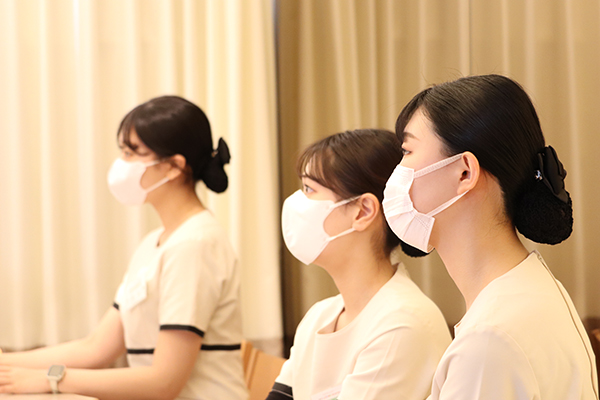 お辞儀の種類や、姿勢、所作などを学んでいきます。