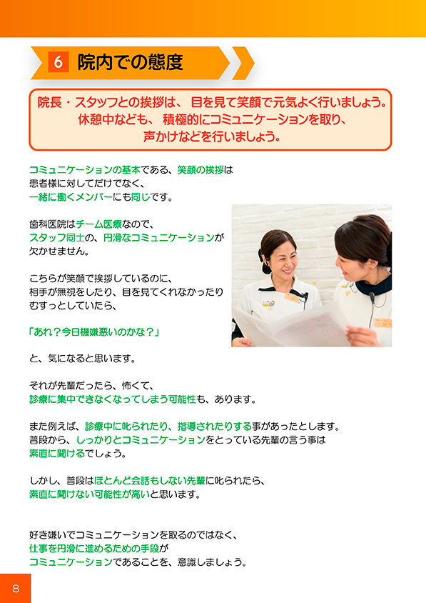 ・正しい衣服の着用や清潔感のある身だしなみは、患者様からの第一印象にも強く影響を与える