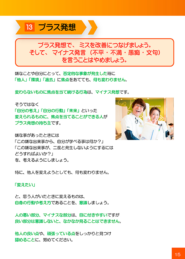 ・先輩スタッフの助言、アドバイスをまず受け入れて、素直に実践する姿勢を持ち