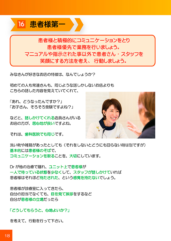・患者様と積極的にコミュニケーションを取り、マニュアルや指示された事以外で、患者様や