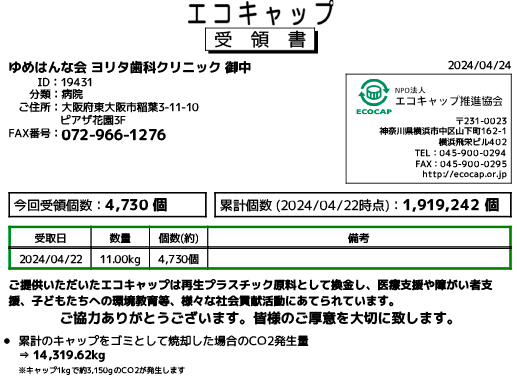 たくさんの患者様からの協力のお陰で、10年で100万個を超えるキャップを