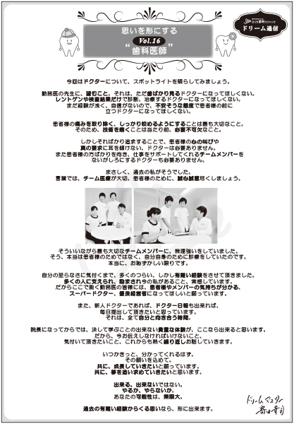 歯科医療を通じ、患者様に夢と希望を与えること。