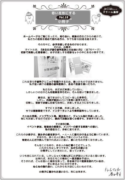 だろうと感じます。小冊子があるから、ヨリタ歯科に通いたいと思う患者様も