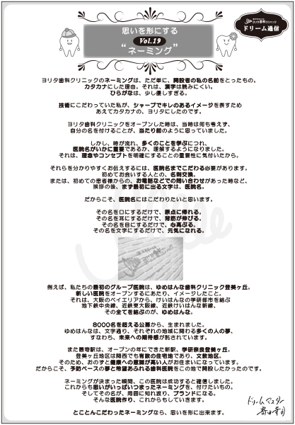 ネーミングが決まった瞬間、この医院は成功すると確信しました。